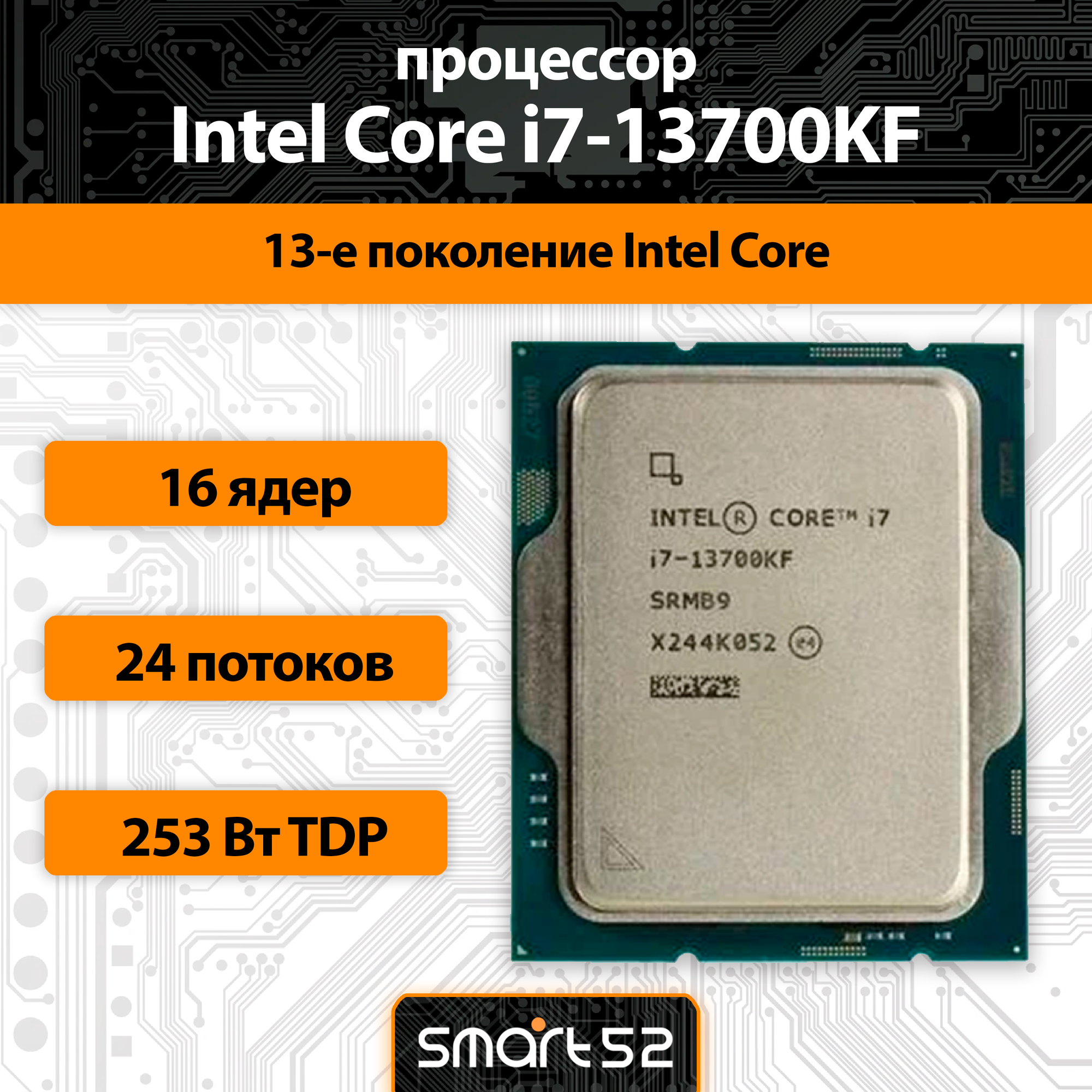 Core i7-13700KF BOX (Raptor Lake, Intel 7, C16(8EC/8PC)/T24, Efficient-core Base 2.50GHz(EC), Performance Base 3,40GHz(PC), Turbo 5,40GHz, Max Turbo 5,40GHz, Without Graphics, L2 24Mb, Cache 30Mb, Base TDP 125W, Turbo TDP 253W, S1700)