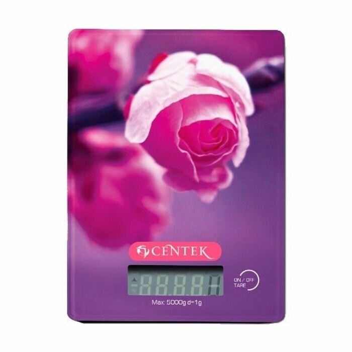Весы кухонные Centek CT-2459 (Роза) стеклянные, электронные, max 5кг, шаг 1г, шелкография, LCD