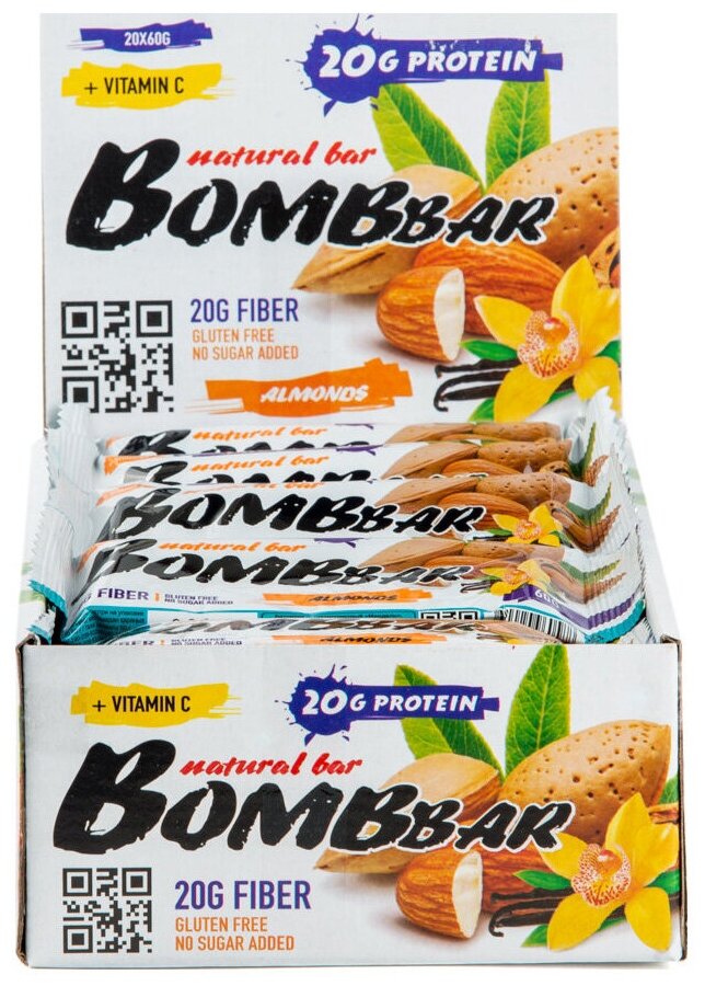 Купить BombBar Protein Bar 60 г (коробка 20 шт) Миндаль-ваниль