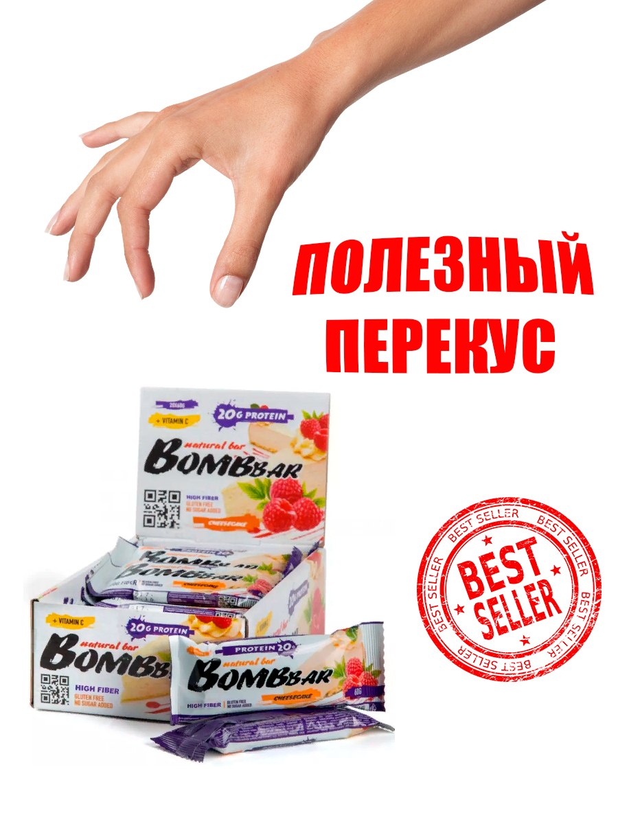 Купить BOMBBAR Протеиновый батончик 60г (20шт коробка) (Малиновый чизкейк)