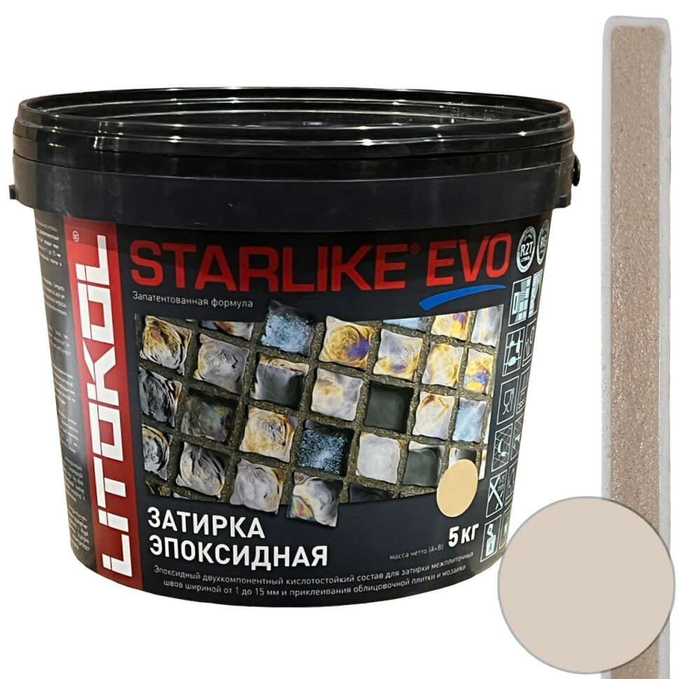Затирка для плитки двухкомпонентная на эпоксидной основе Litokol Starlike EVO (5кг) S.208 sabbia