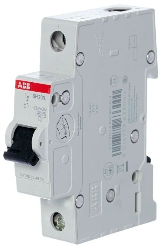Выключатель автоматический модульный 1п C 20А 6кА SH201 C 20 ABB 2CDS211001R0204