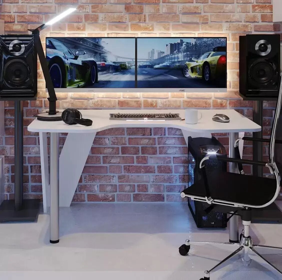 Стол компьютерный игровой с металлическими опорами КСТ-116, цвет белый, ШхГхВ 150х90х75 см.