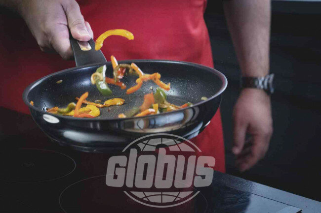 | Плюсы: | толстое цельное дно для индукции. равномерная прожарка даже с краёв |
