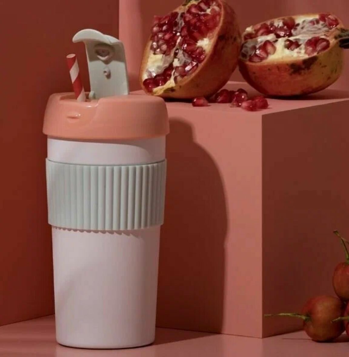 Ecosystem Термостакан-непроливайка KissKissFish Rainbow Vacuum Coffee Tumbler (розовый, светло-зелёный, белый)KissKissFish Rainbow Vacuum Coffee Tumbler (Pink)