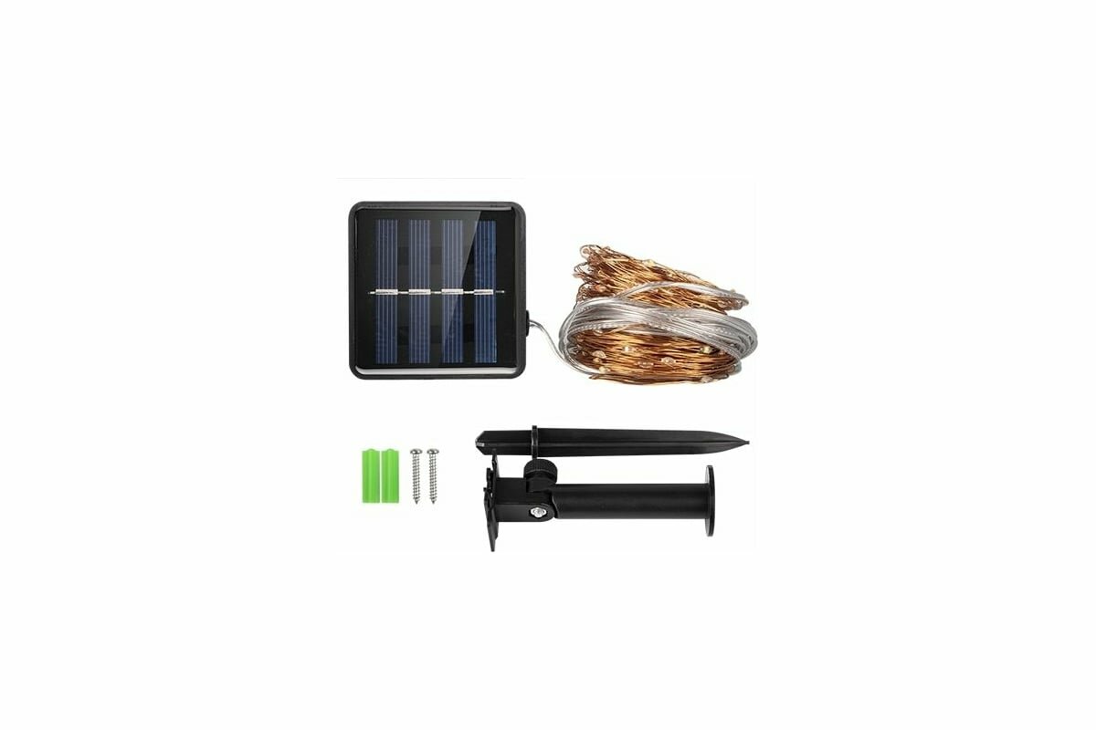 | Комплектация | светильник-гирлянда (светодиоды, солнечная батарея со встроенным аккумулятором), крепеж (два самореза и дюбеля) |