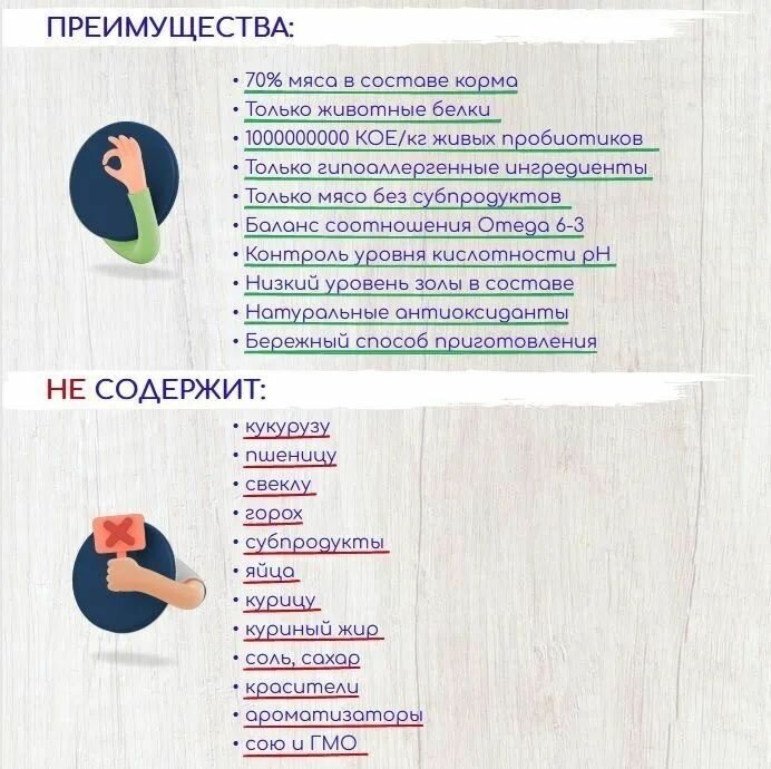 | Дополнительная информация | не содержит: кукурузу, пшеницу, свеклу, горох, субпродукты, яйца, курицу, куриный жир, соль, сахар, красители, ароматизаторы, сою и гмо |