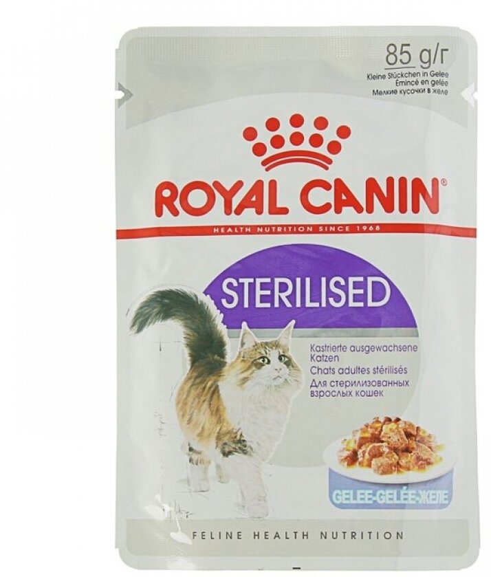 Влажный корм желе для кошек Royal Canin Sterilised (Стерилайзд) для стерилизованных кошек в возрасте от 1 до 7 лет, 24x0.085кг