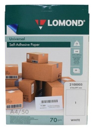 Бумага Lomond самоклеящаяся (2100005), 1 деление, A4, 70 г/м2, 50 л.