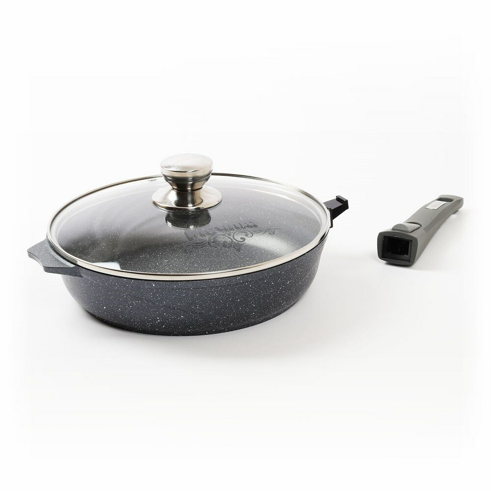 Сковорода с гранитным антипригарным покрытием крышкой и съемной ручкой 28 см Мечта