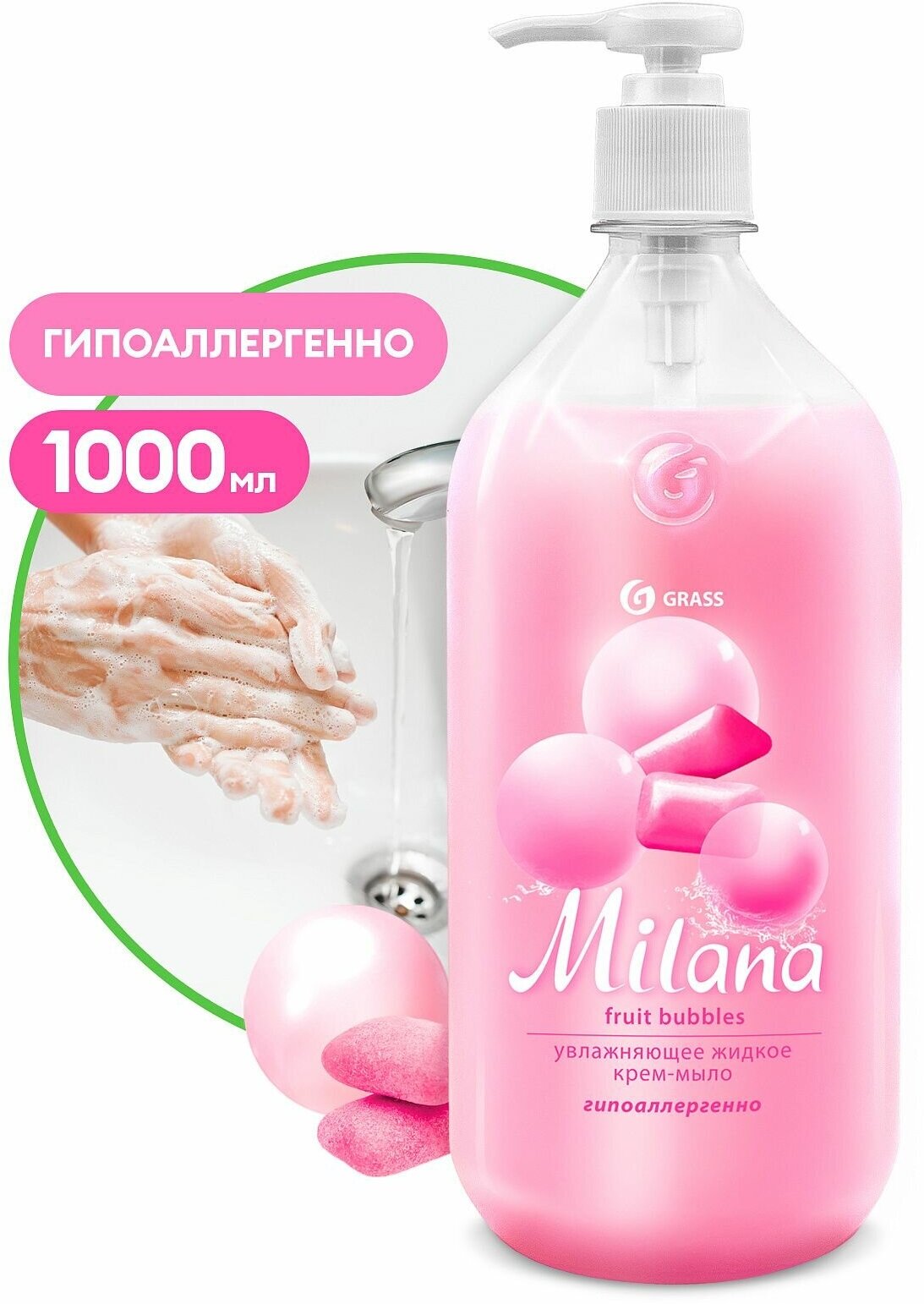 Жидкое крем-мыло MILANA FRUIT BUBBLES с дозатором флакон 1л GRASS 125312