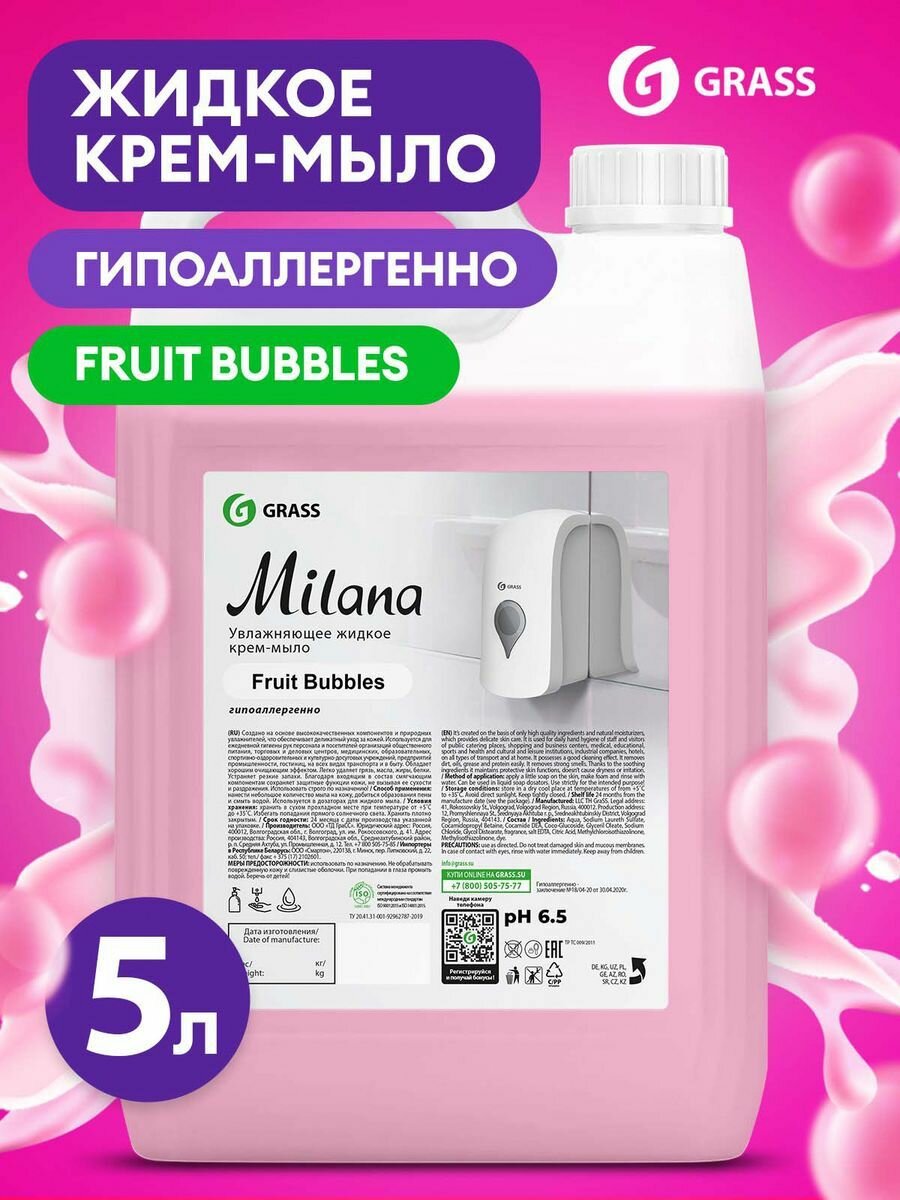 Мыло Жидкое Жидкое Крем-Мыло Milana Fruit Bubbles 5кг GraSS арт. 125318