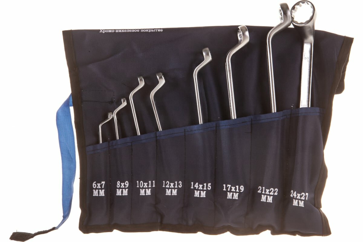 Набор ключей гаечных накидных изогнутых 75° в сумке, 6-27 мм, 8 предметов
