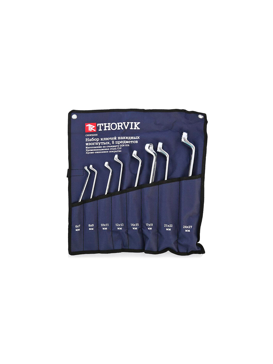 Набор ключей гаечных накидных изогнутых Thorvik 75° в сумке, 6-27 мм, 8 предметов ORWS008