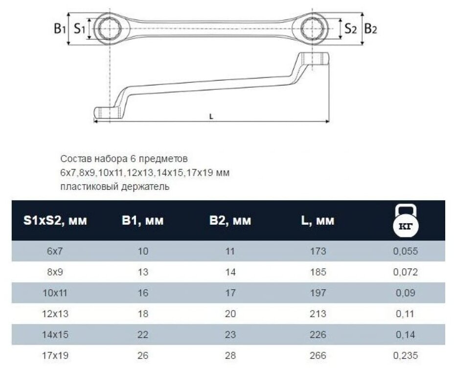| Гаечные ключи подробно | 6х7, 8х9, 10х11, 12х13, 14х15, 17х19 мм |