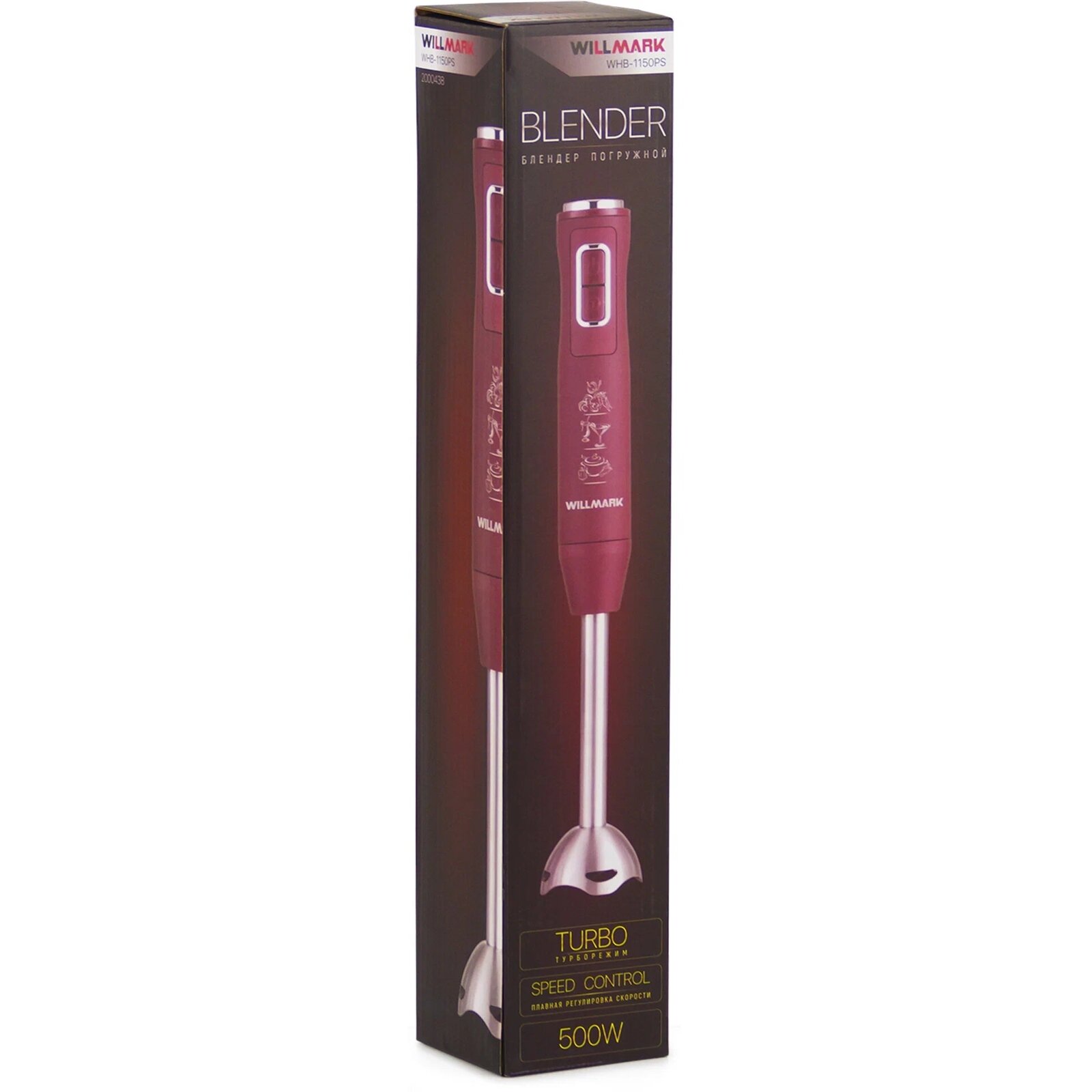 Блендер погружной WILLMARK WHB-1150PS (500Вт,регул. скорости,турбо режим,Soft touch, бордовый)