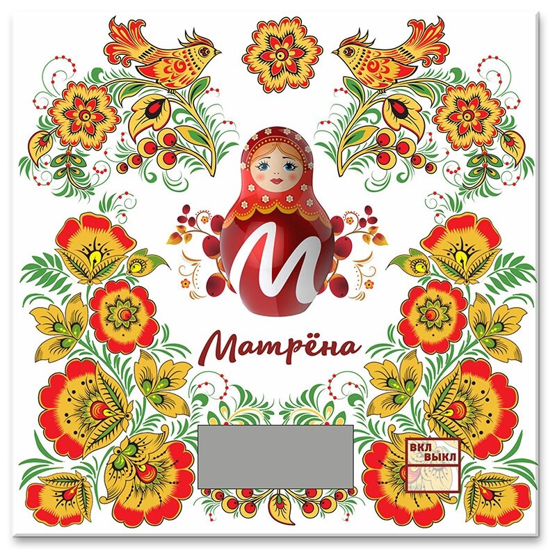 Весы кухонные Матрёна МА-033 005987 Матрешка электронные, стекло, белый с рисунком, нагрузка до 7кг / для взвешивания продуктов / техника для кухни