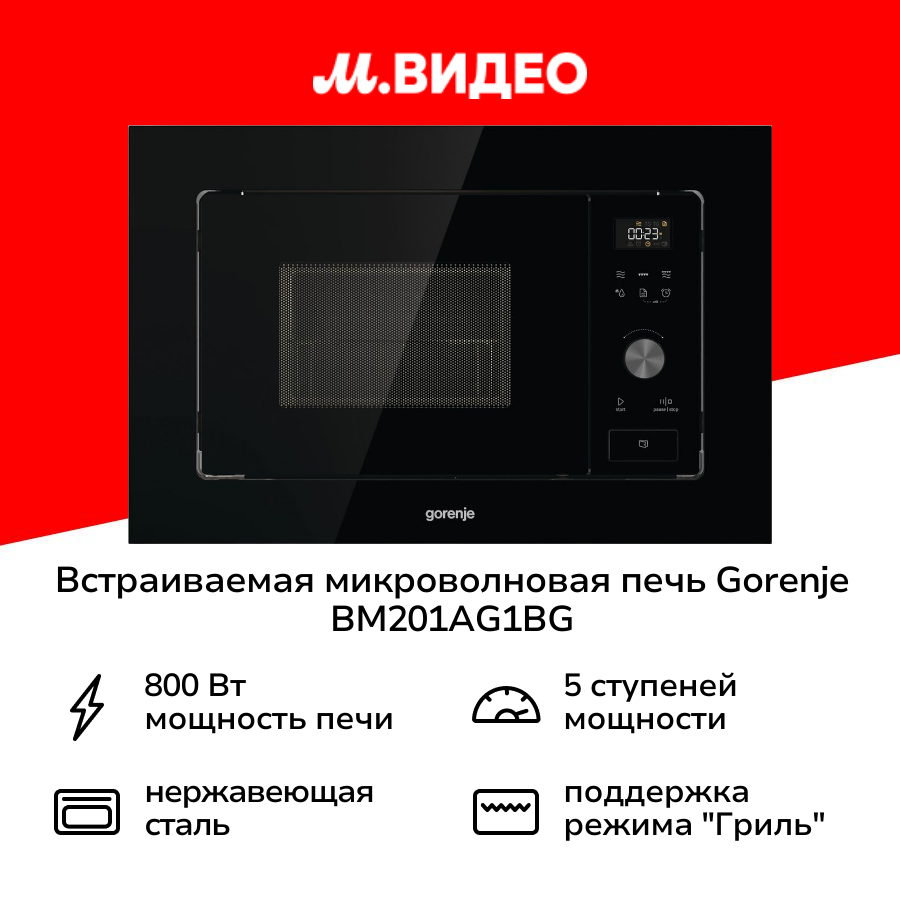 Встраиваемая микроволновая печь Gorenje BM201AG1BG интересное: