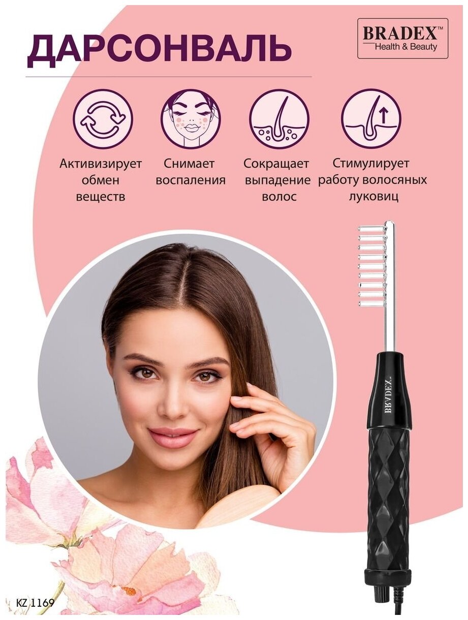 BRADEX Дарсонваль импульсный массажер для тела, лица и волос с 5 насадками с Аргоном, черный, BRADEX