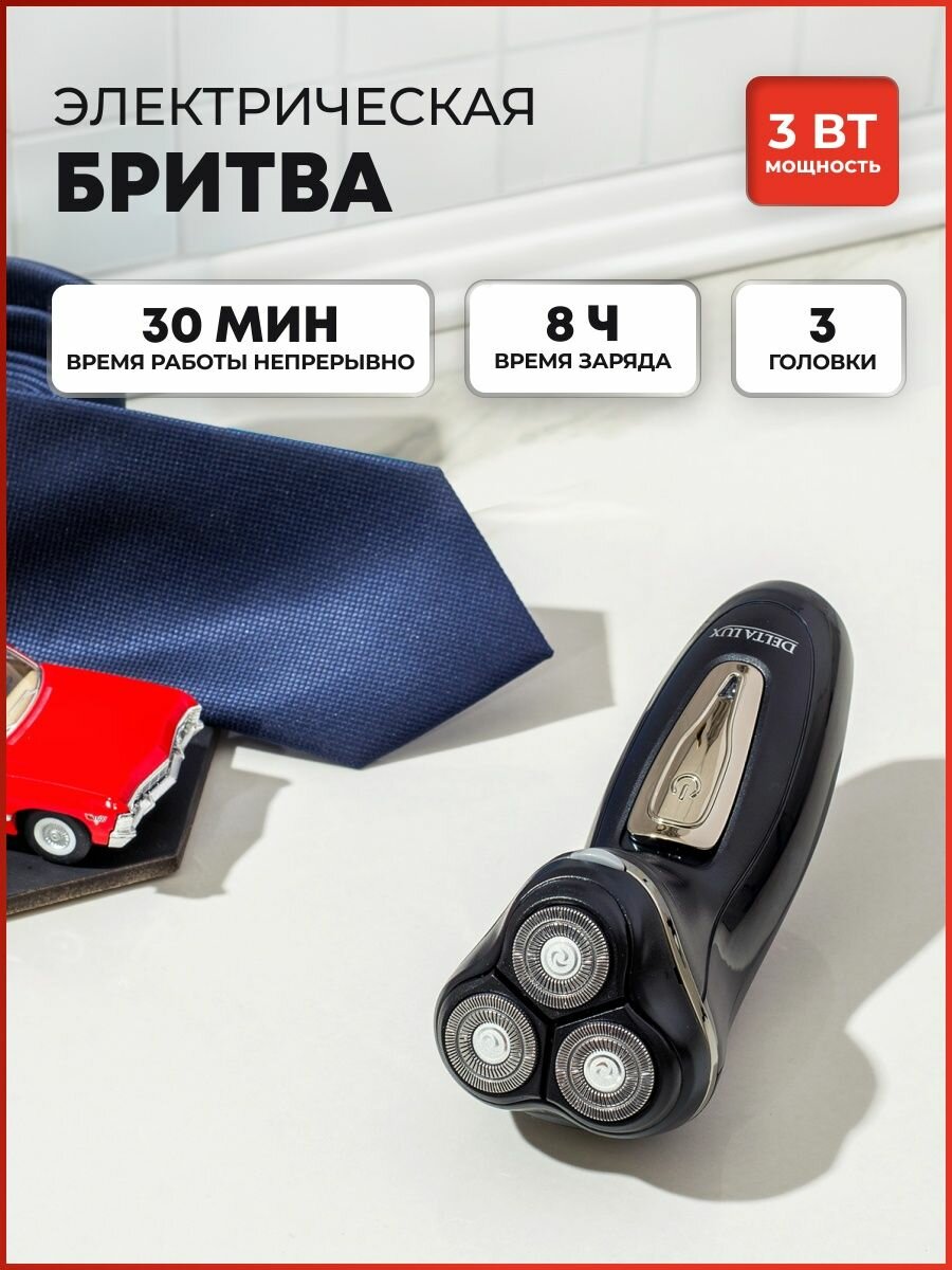 Бритва электрическая DELTA LUX DL-0726 черный: 3 Вт, аккум. 2,4 В интересное: