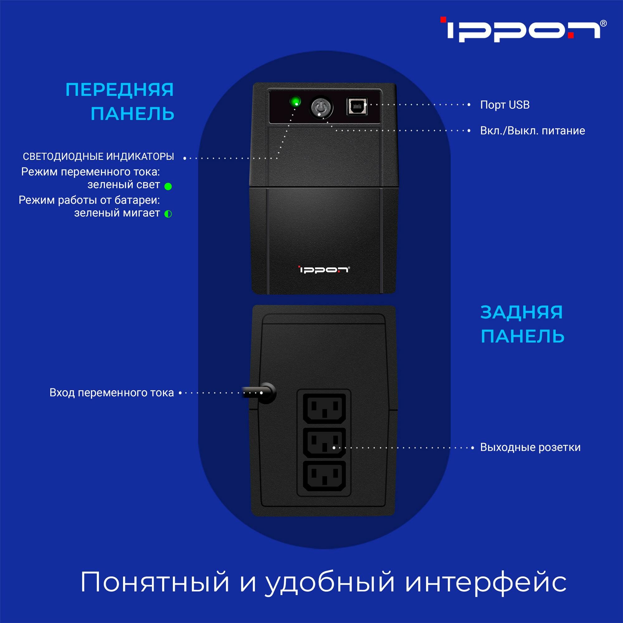 ИБП Ippon Back Basic 650 650VA/360W RJ-11,USB (3 IEC) интересное: