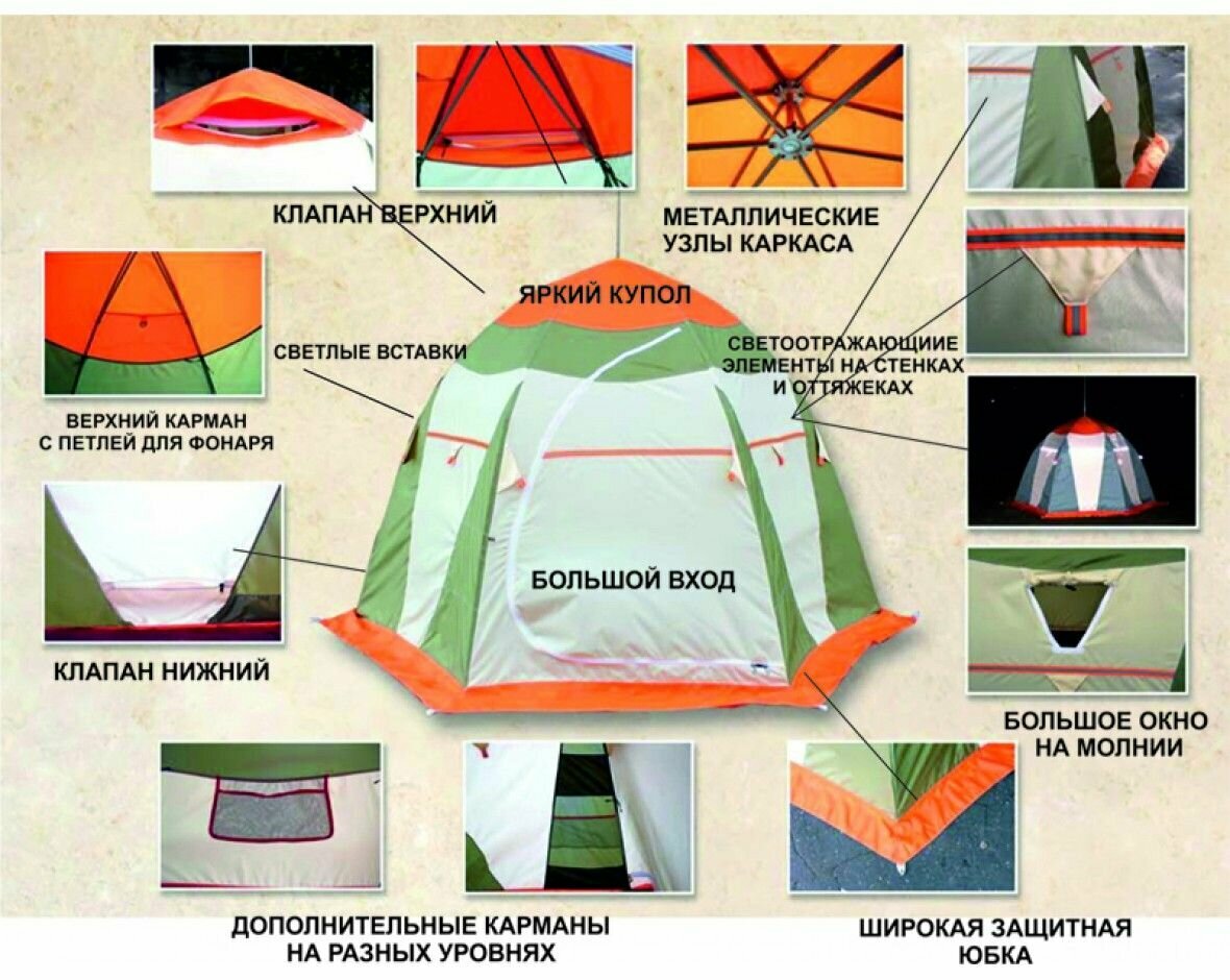 Палатка для зимней рыбалки Митек Нельма-3 (оранжево-бежевый/хаки) интересное: