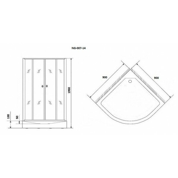Душевой уголок NG- 007-14 (900х900х1950) низкий поддон(13см) стекло матовое