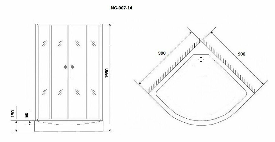 Душевой уголок NG- 007-14 (900х900х1950) низкий поддон(13см) стекло матовое