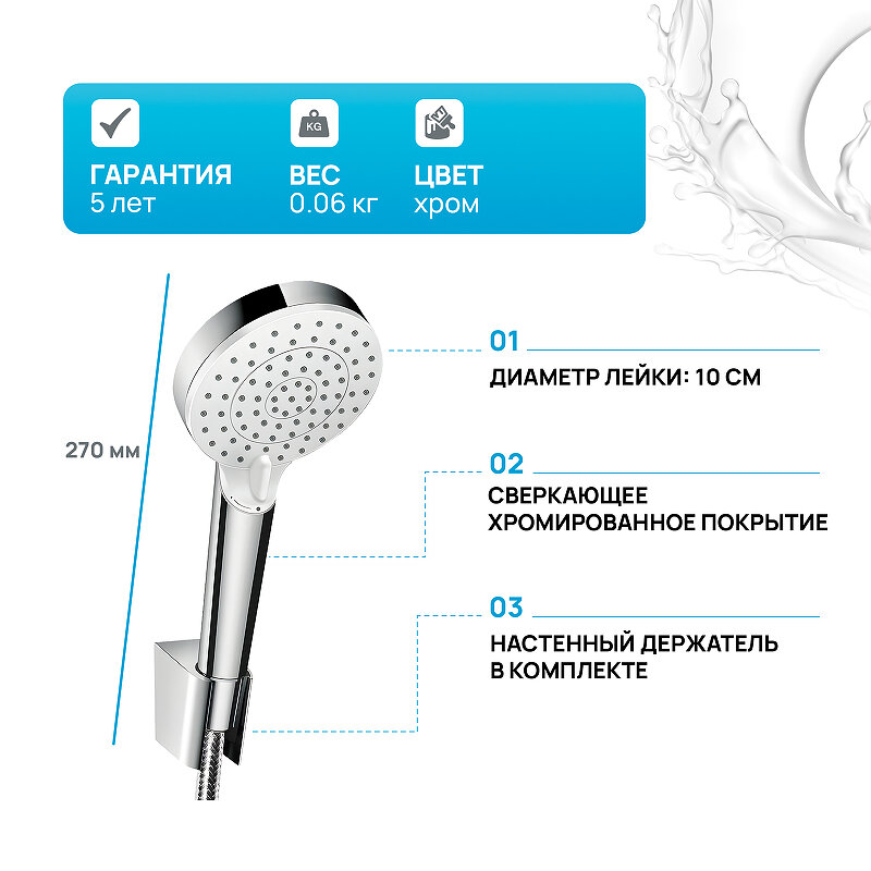 Душевой набор Hansgrohe Crometta 100 с держателем и шлангом 160 см 26692400