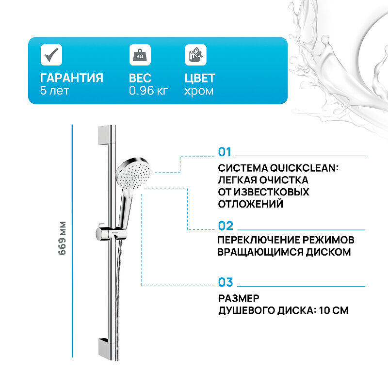Душевой гарнитур Hansgrohe Crometta Vario, 2 режима, L650мм, 14 л/мин 26532400