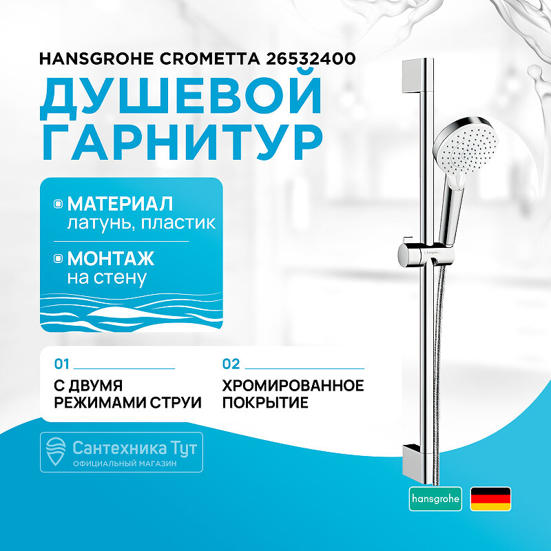 Ниже Вы можете прочитать отзывы на Душевой гарнитур Hansgrohe Crometta Vario 26532400, ознакомится с подробными характеристиками, посмотреть интересные обзоры и фотографии на Душевой гарнитур Hansgrohe Crometta Vario 26532400.