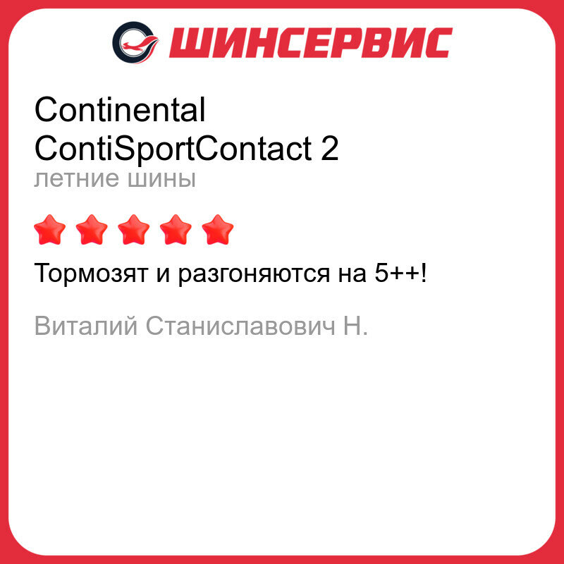 | Отзыв: | Всем доброго!!! Приобрёл в этот летний сезон идеальные тапочки 205/55 R16 ContiSportContact 2 FR ML Continental 91V TL AO. Из последнего ездил на Michelin Energy Saver(слишком мягкая боковина, вследствии чего неоднократно ловил грыжи), и на Bridgestone Turanza ER300(очень жёсткие и шумные). Хотелось найти золотую середину и не уходить от премиум-брэндов. Остановил свой взор на данной модели и остался полностью доволен своим выбором, оправдали все возложенные надежды. Спорт, комфорт, управляемость, надёжность - всё в одном))) Плюсом при покупке комплекта шин Continental действует расширенная годовая гарантия и бесплатный шиномонтаж!!! Всем советую и буду рекомендовать в дальнейшем!!! |