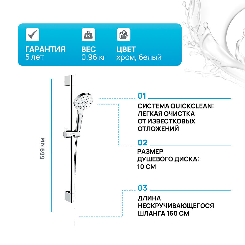Душевой набор hansgrohe Crometta 1jet 65 см. 26533400, белый/хром