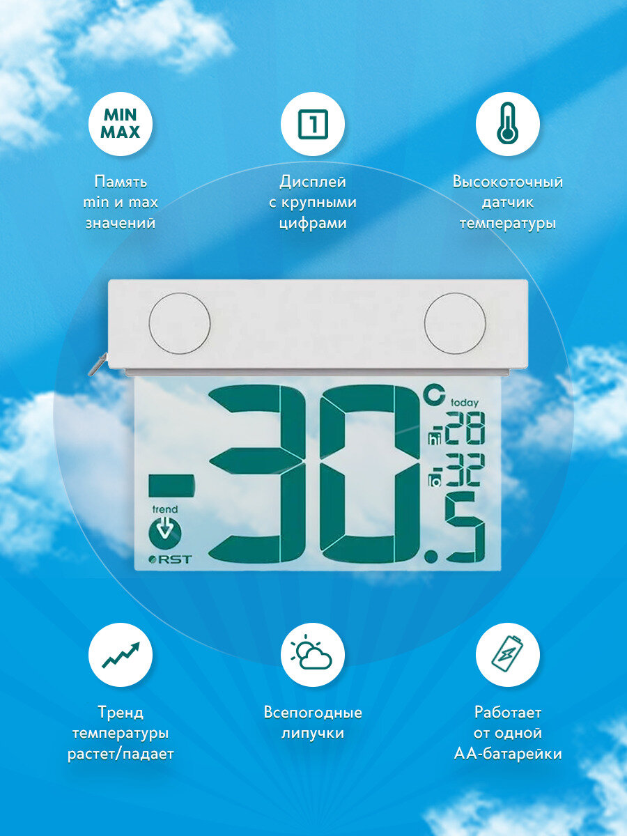 СохранитьТермометр цифровой оконный RST 01077 интересное: