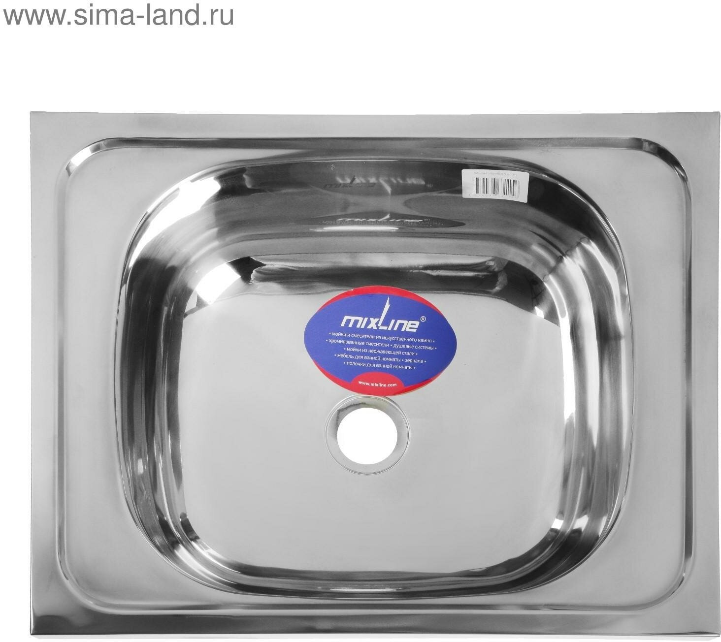 Мойка кухонная MIXLINE 527962, накладная, толщина 0.4 мм, 50х40х16 см, выпуск 1 1/2"./В упаковке шт: 1