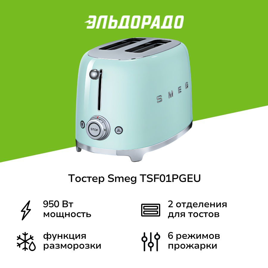 Тостер SMEG TSF01UJEU, мощность 950 Ватт, 2 отделения для тостов, автоматическое поднятие тостов
