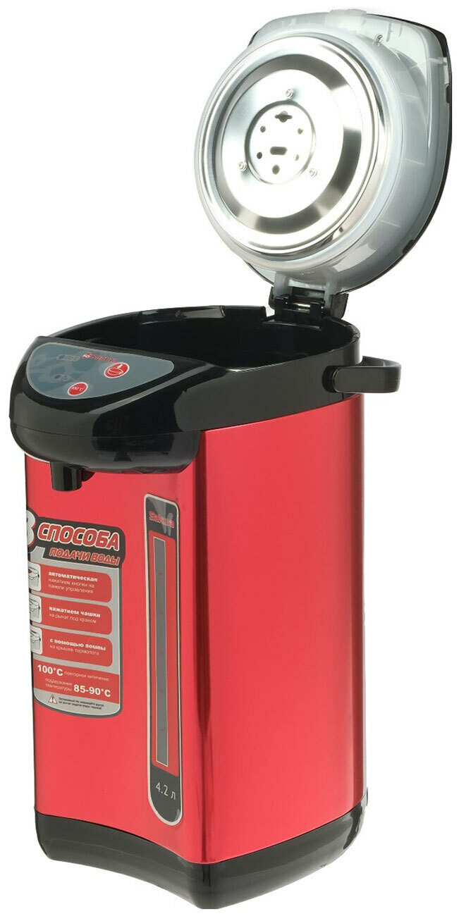 Термопот SA-335BR, 4.2 л, 750 Вт, 3 способа подачи воды, черно-красный