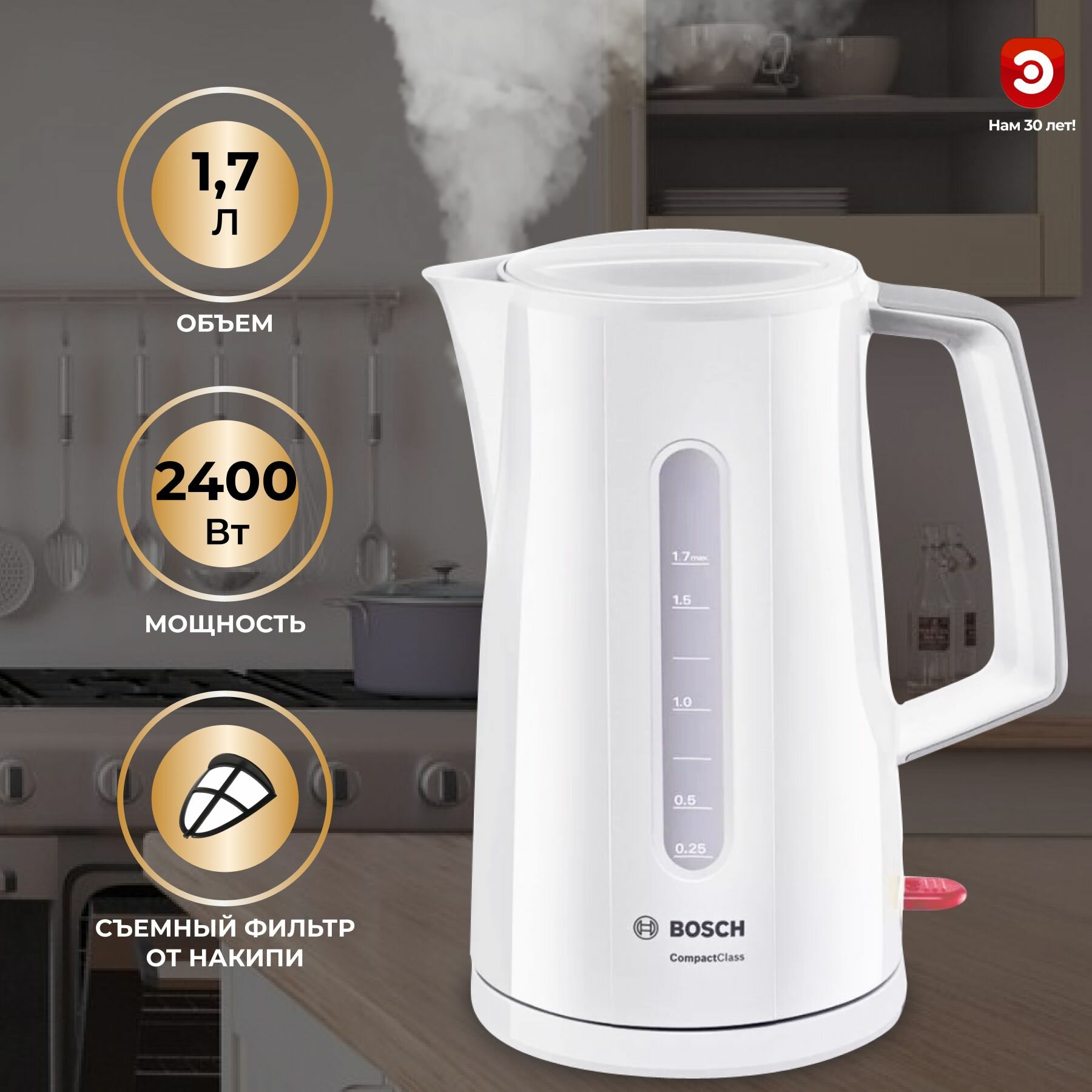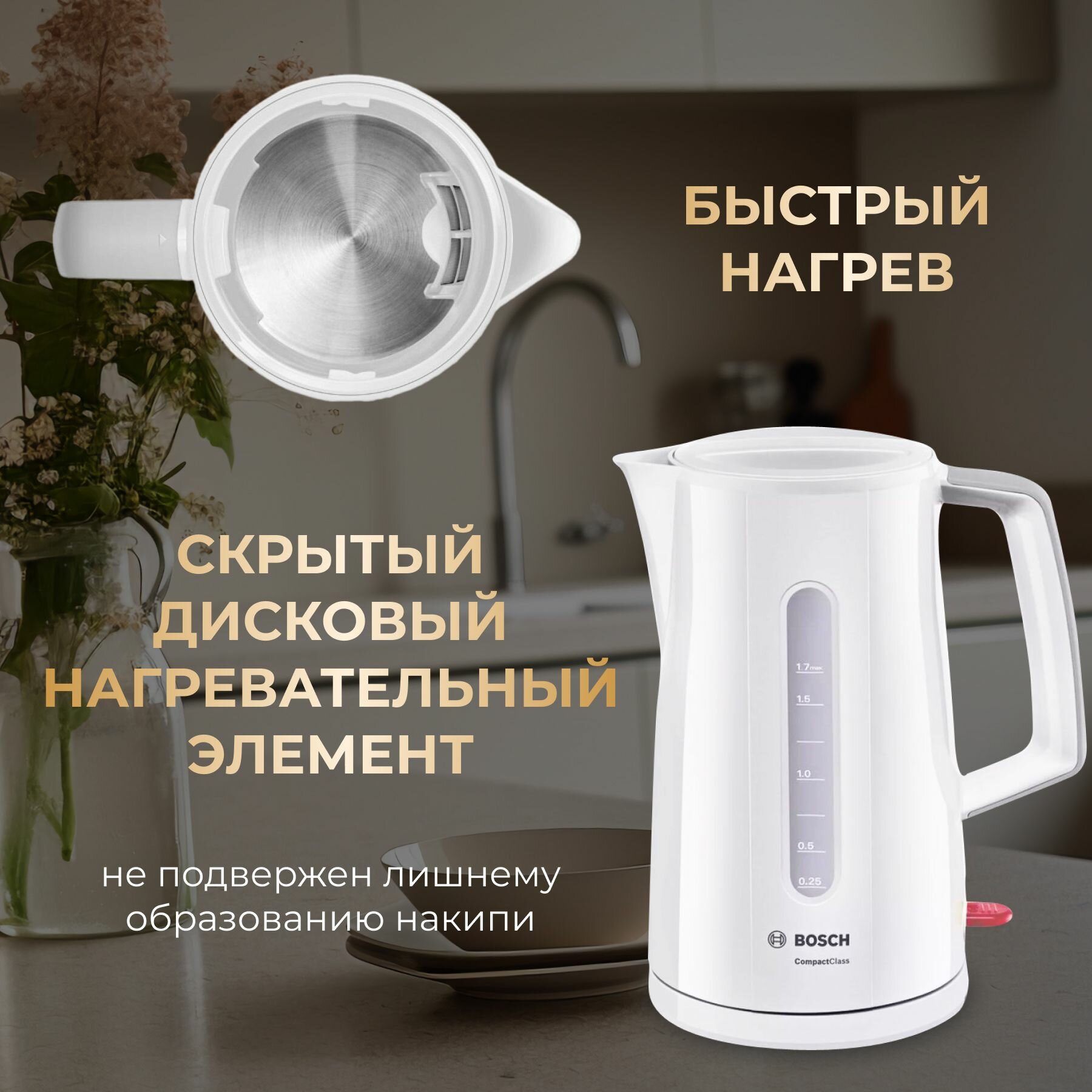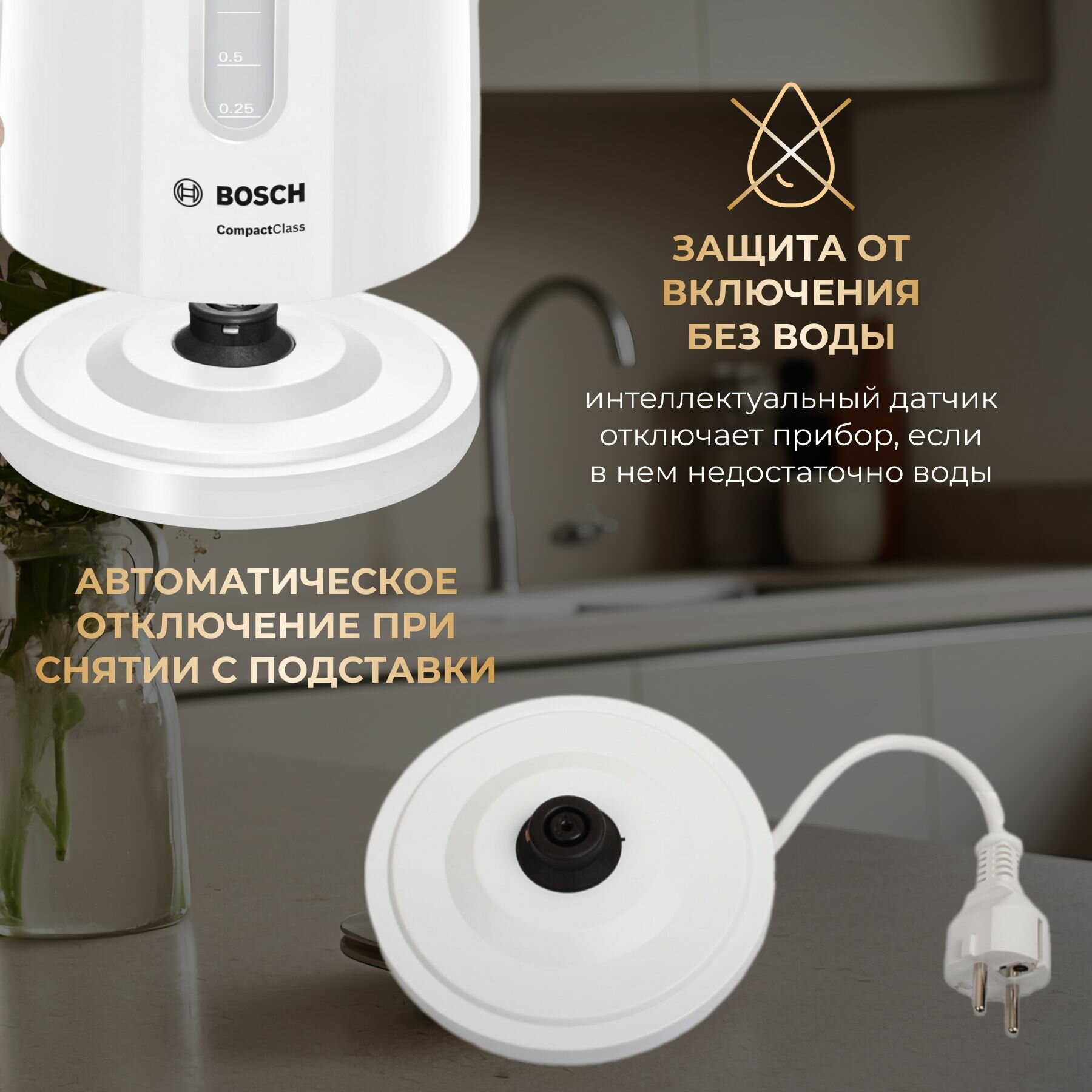 BOSCH TWK3A011 Чайник, белый, 2400Вт, 1,7 л