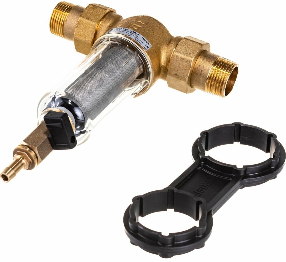 Фильтр механической очистки Resideo Braukmann FF06-AA муфтовый (НР/НР), латунь, со сливом Ду 25 (1")