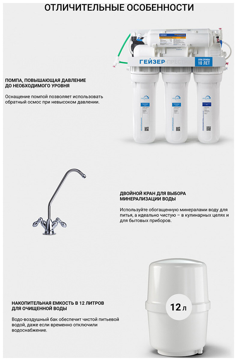 СохранитьСистема обратного осмоса Гейзер Престиж-П-М кран 3 20019 интересное: