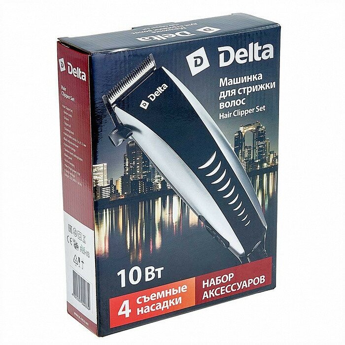 Машинка для стрижки DELTA DL-4012, 10 Вт, 4 насадки, серебряная