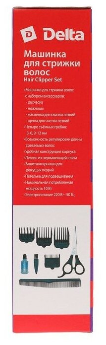 Машинка для стрижки DELTA DL-4012 серебро, 10Вт, 4 съемных гребня (24)
