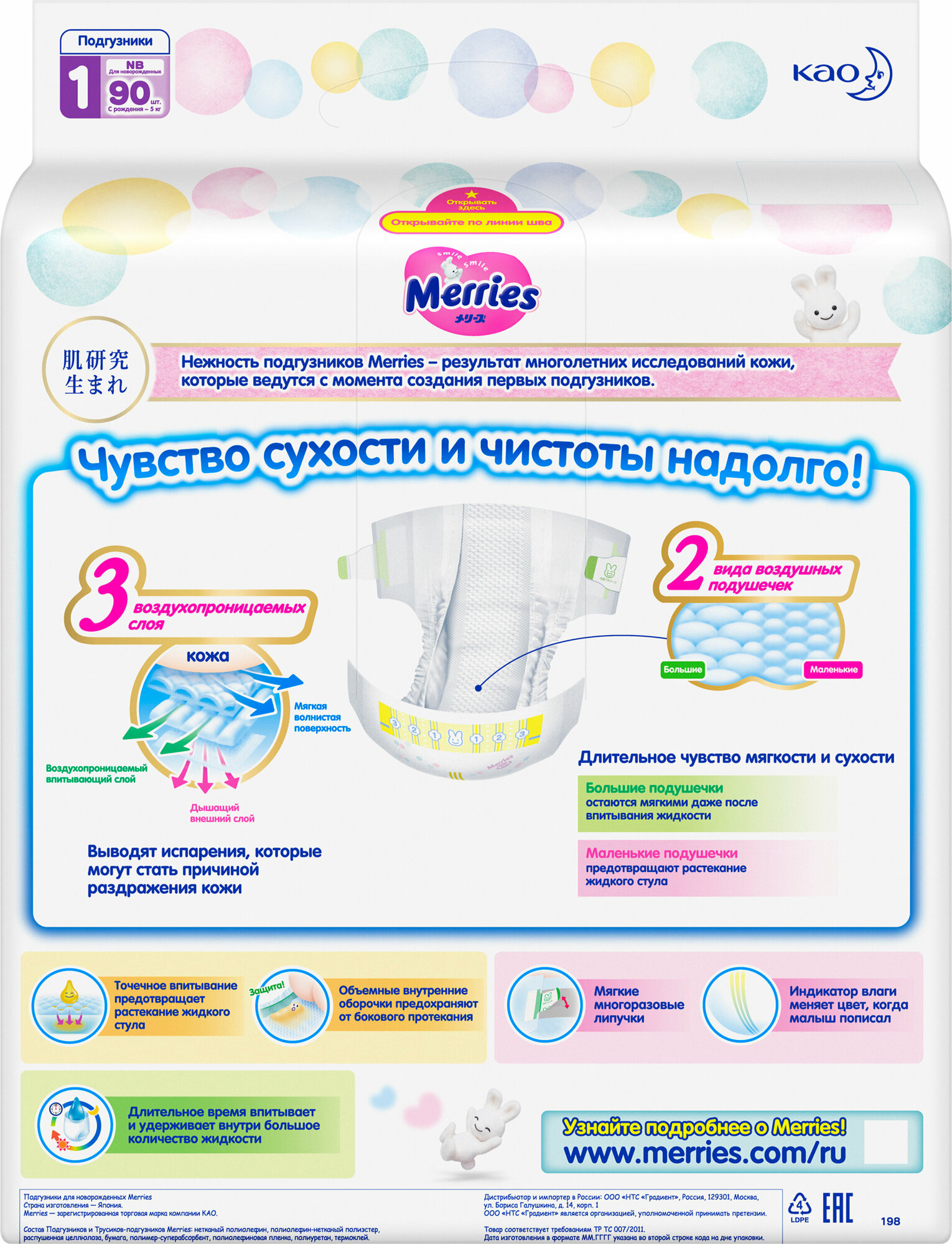 Подгузники MERRIES (Мерриес) для новорожденных NB (до 5 кг) 90 шт