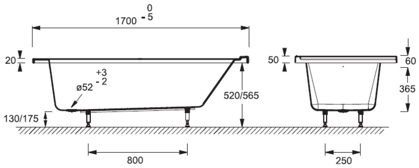 Акриловая ванна Jacob Delafon Formilia 170x80 L E6139L-00 без гидромассажа