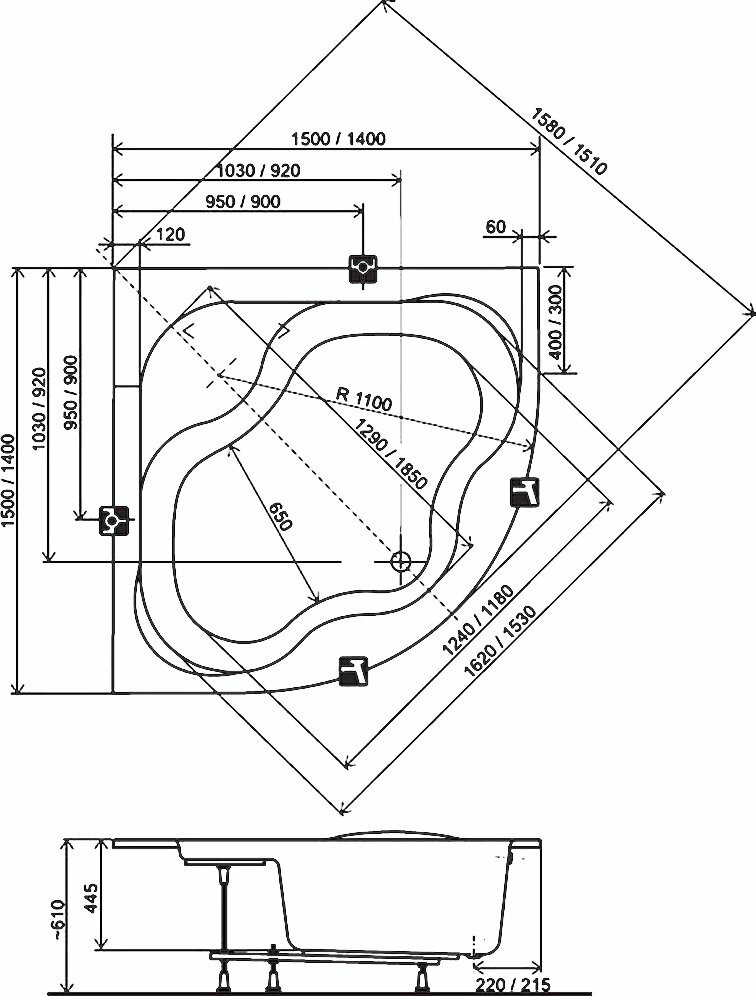 | Плюсы: | Есть удобное сиденье или полочка над уровнем воды, на которое можно присесть или поставить необходимые моющие средства или для романтической обстановки свечи и прочую лабуду. Я люблю на данном сиденье делать педикюр. В полном восторге от центрального расположение слива, очень удобно для тех кто купается как мы с детьми или с супругой или супругом. Толстое дно, не могу понять почему многие пишут ,что остывает воды быстро т.к. мы купаясь этого не замечаем. |