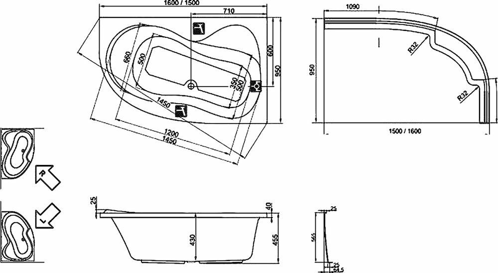 | Дополнительная информация | правосторонняя или левосторонняя; опции: панель, шторка, подголовник, ручки, хромотерапия |