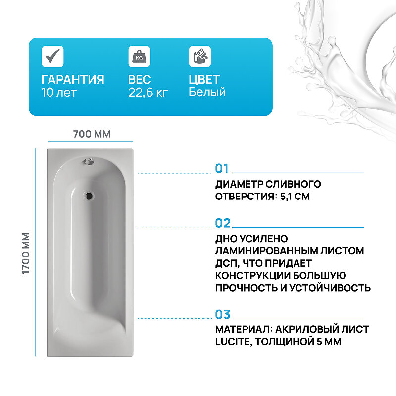 Акриловая ванна RIHO MIAMI 170x70, B060001005 (BB6200500000000)