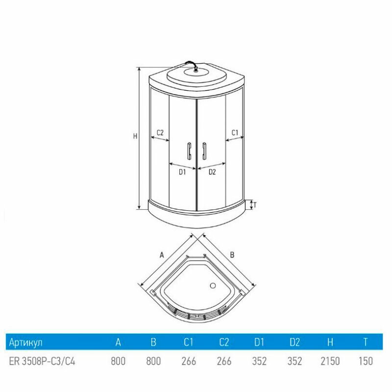 Душевая кабина Erlit ER3508P-C3-RUS (800x800x2150)