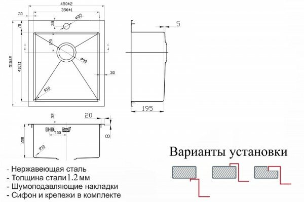 | Установка | врезная |