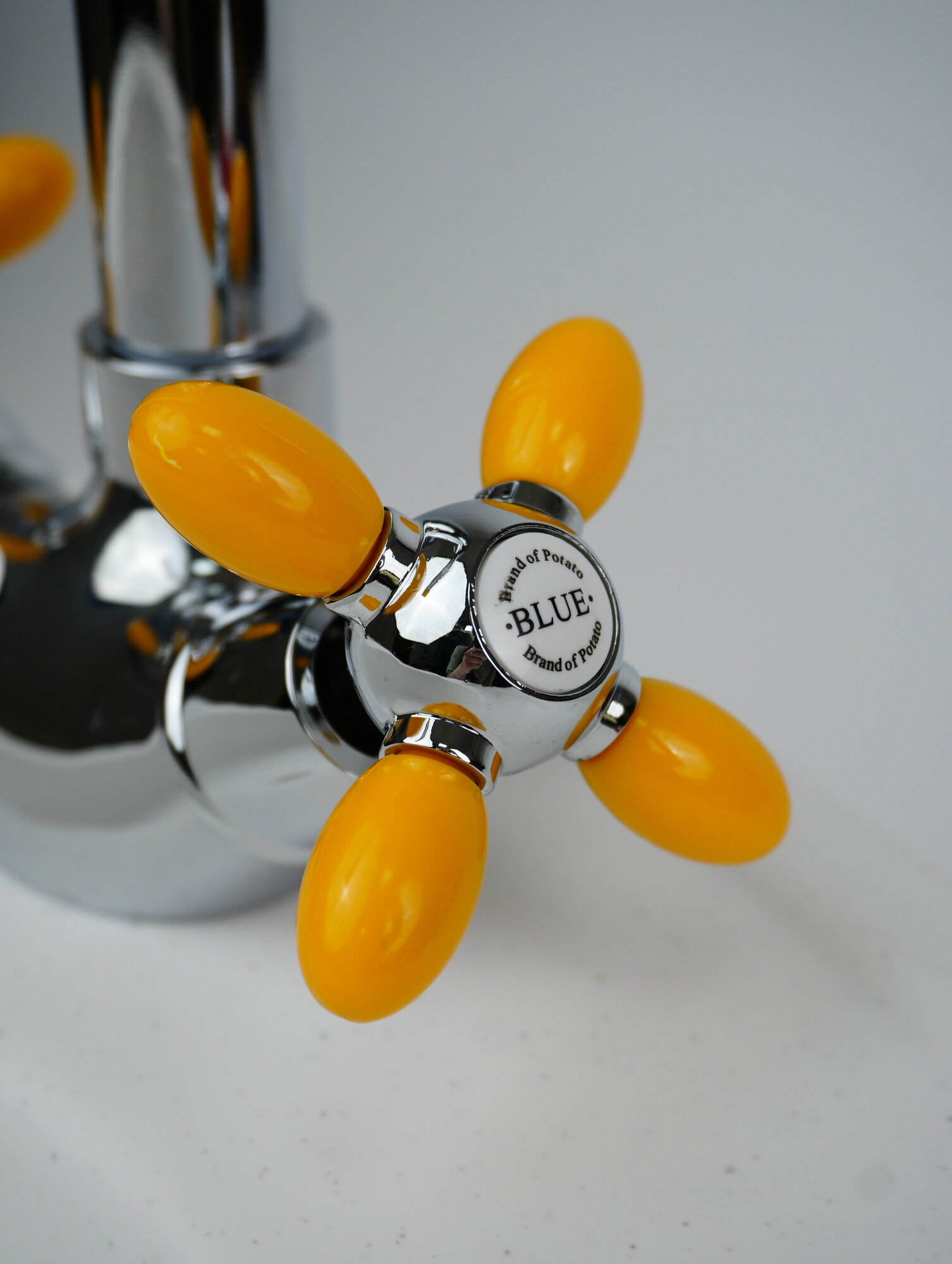 Смеситель для кухни с высоким изливом, цвет ручки, аэратор - желтый, хром, Potato, арт P4471-10
